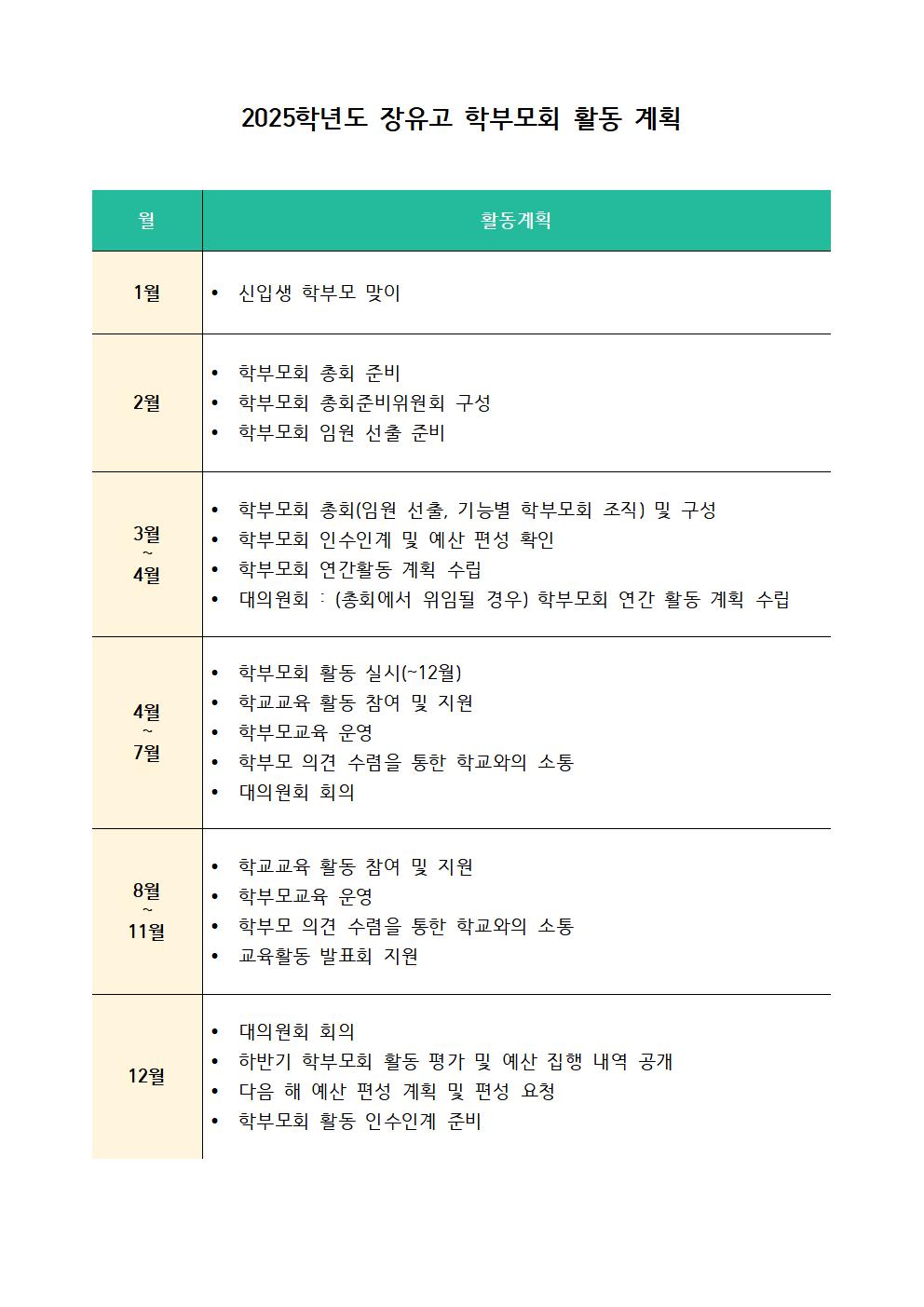 2025학년도 장유고등학교 학부모회 총회 결과 게시 및 대의원회 개최 안내